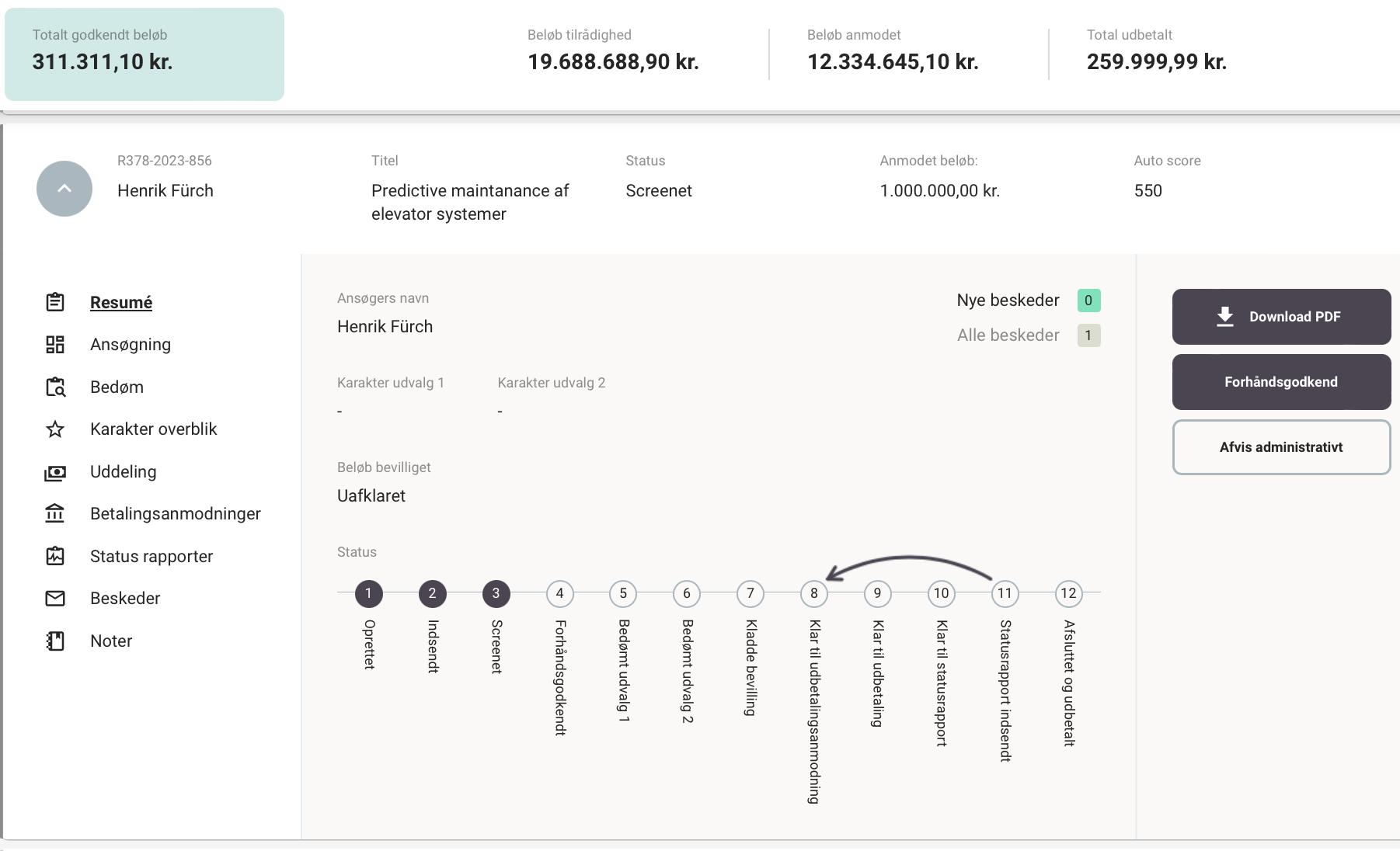 Brugervenlig status på ansøgninger, midler og uddelinger.
